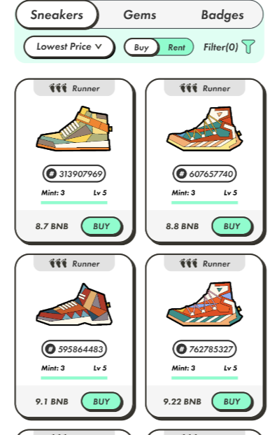 신발은 솔라나와 BNB기반으로 되어있으며, 보통 솔라나 기반의 신발을 사는 편입니다.