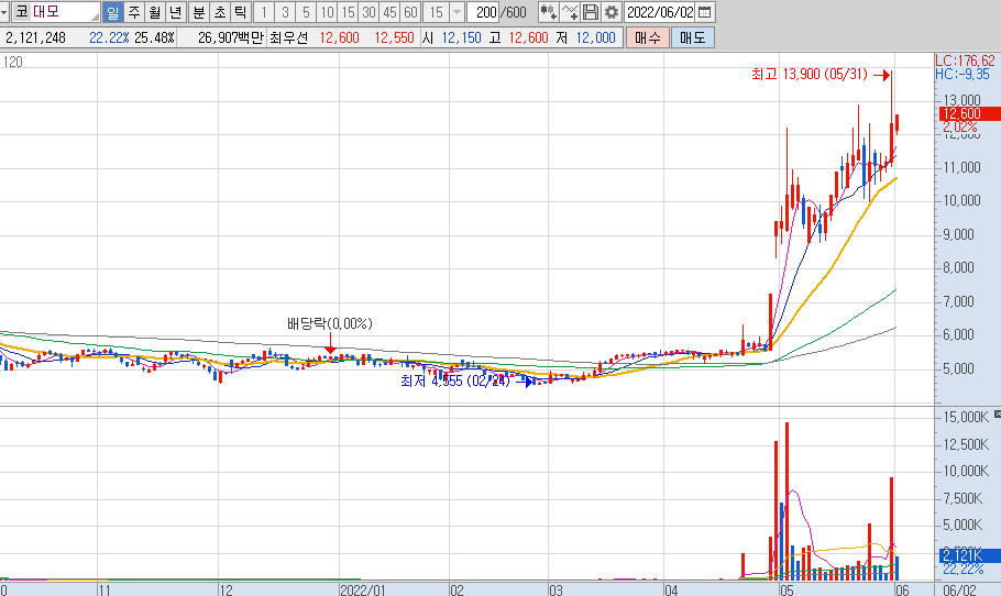 대모는 시간외에 13,500원으로 마감을 하였으며, 전고가를 돌파하지 못하였습니다.