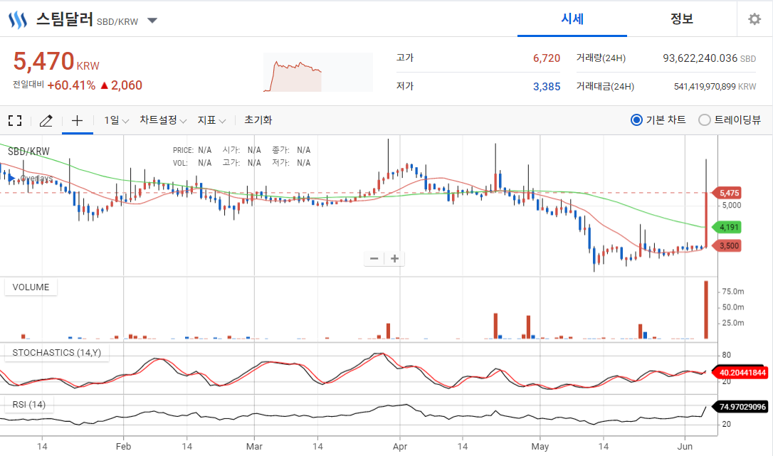 스팀달러도 바닥권에서 거래대금과 함께 상승추세전환을 시도했으며, 앞으로의 횡보가 기대가 되는 추세입니다.