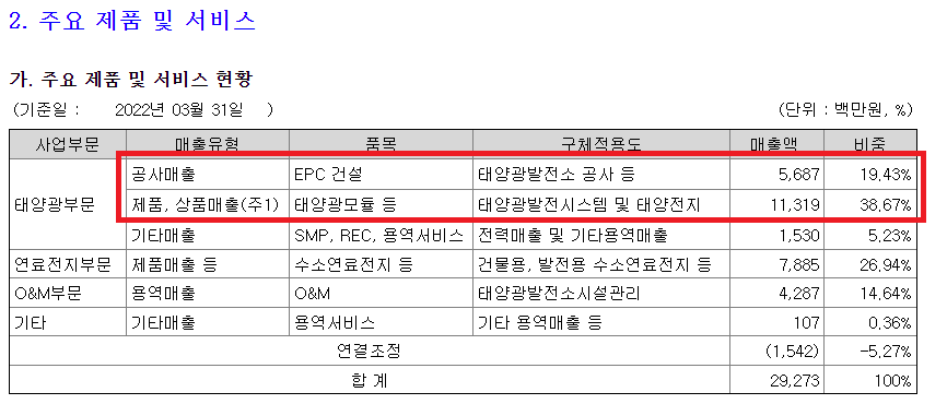 에스에너지의 주요 제품 및 서비스를 보면 태양광부문에 EPC 건설과 태양광 모듈의 매출이 약 58%정도 달하고 있는것으로 보아서 태양광 부분에서 상당한 비중을 차지고 하고 있습니다.