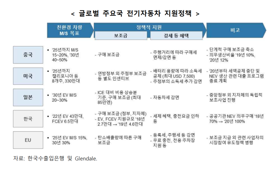 - 전기자동차 완성차 및 배터리 분야에서는 글로벌 수준의 산업경쟁력을 확보하고 있는 상황입니다!!