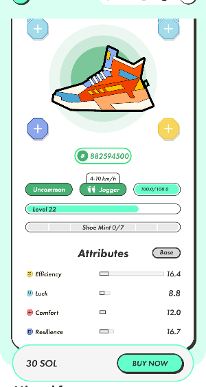 이때 150만원을 투자해서 커먼 트레이너 신발을 샀습니다. 당시 17.5 솔 / 솔가격 약 52,000원 약 90만 원 정도에 구매를 하게 되었고, 나머지 금액으로 신발 2개를 구매해서 150만 원 정도를 사용했습니다. 당시 GST가격은 천 원대 정도였는데, 현재는 200원대로 추락하였습니다. 사실 코인 시장이 전체적으로 하락했기 때문에 저는 1언컴9족을 맞추고 싶어서 한번 더 구매를 하게 되었습니다.