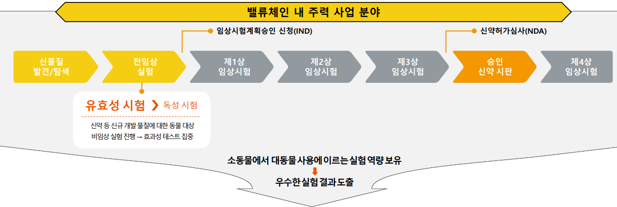 수의학 역량 및 노하우에 기반한 차별화된 서비스 제공으로 시장을 선도하고 있습니다. 실험 군별 진환 동물 제작 능력과 질환 유발 동물의 수의학전 관리 및 영상장비 기반 차별화된 서비스로 대동물 시험건수 추이가 지속적으로 증가하고 있습니다. 이외 사업들도 다각화를 하면서 좋은 모습을 보여주고 있습니다,