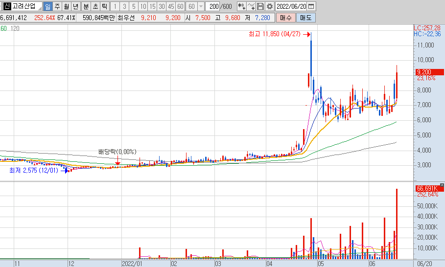 고려산업 차트