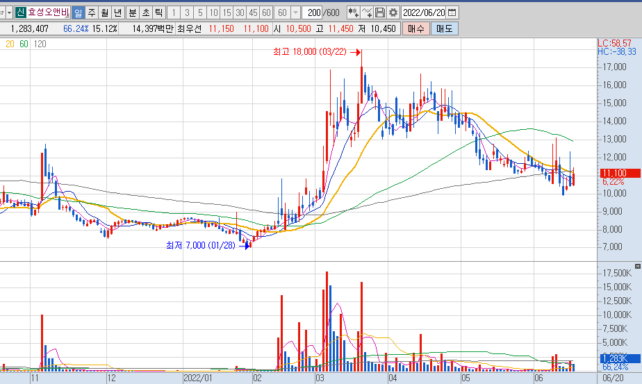 효성오앤비 차트