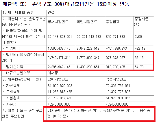효성오앤비의 매출을 보면 영업이익은 -22%지만 당기순이익이 54% 상승을 하였습니다. 이에 대한 주요 원인으로는 외환 관련 차익, 유형자산 처분 이익, 금융상품 평가이익 증가로 평가되고 있습니다.