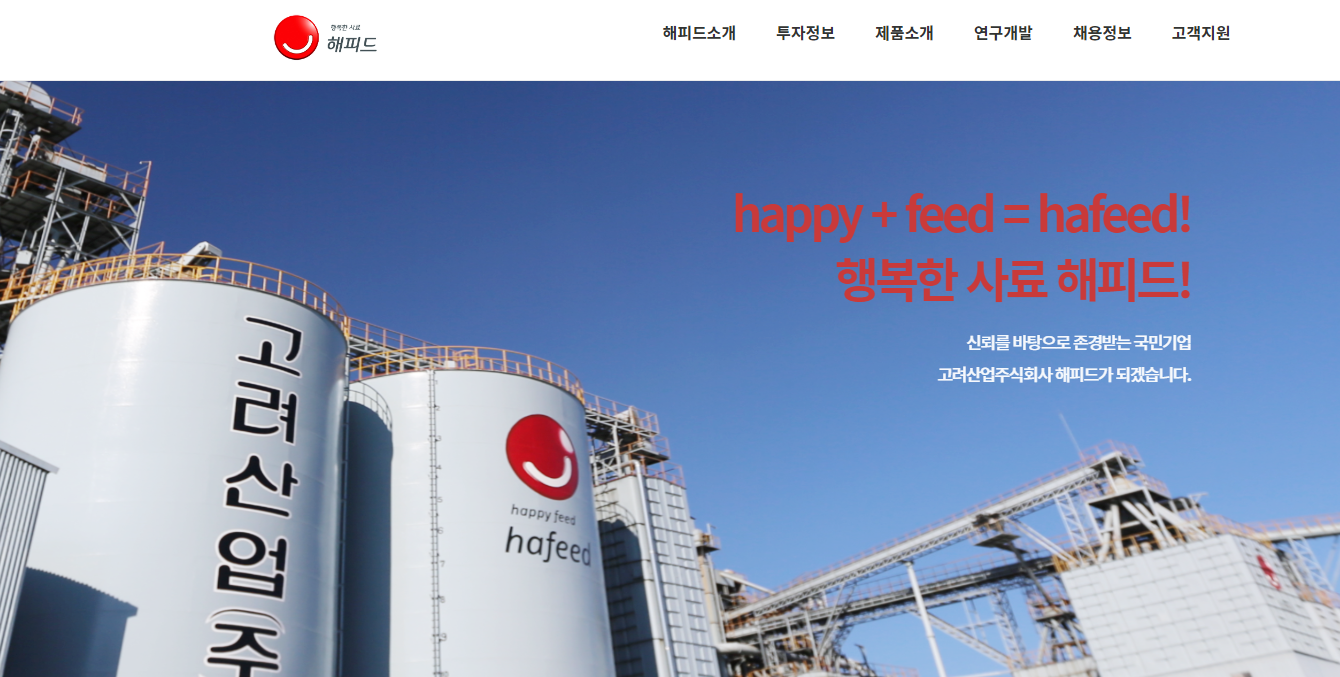 고려산업의 원재료는 미국, 브라질 등으로부터 옥수수, 대두박 등 제품 생산에 필요한 원재료를 수입하고 있으며, 주요 곡물 공급업체의 거래비율은 30%를 상회하는 것으로 추정되고 있습니다.