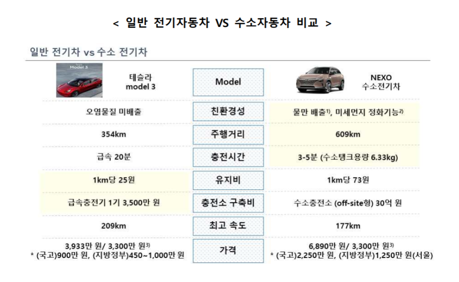 수소자동차는 전기로 구동되는 원리는 전기자동차와 같으나, 전기자동차와 달리 수소를 주입해 전기를 생산하고 생산된 전기를 이용해 주행한다는 점이 상이