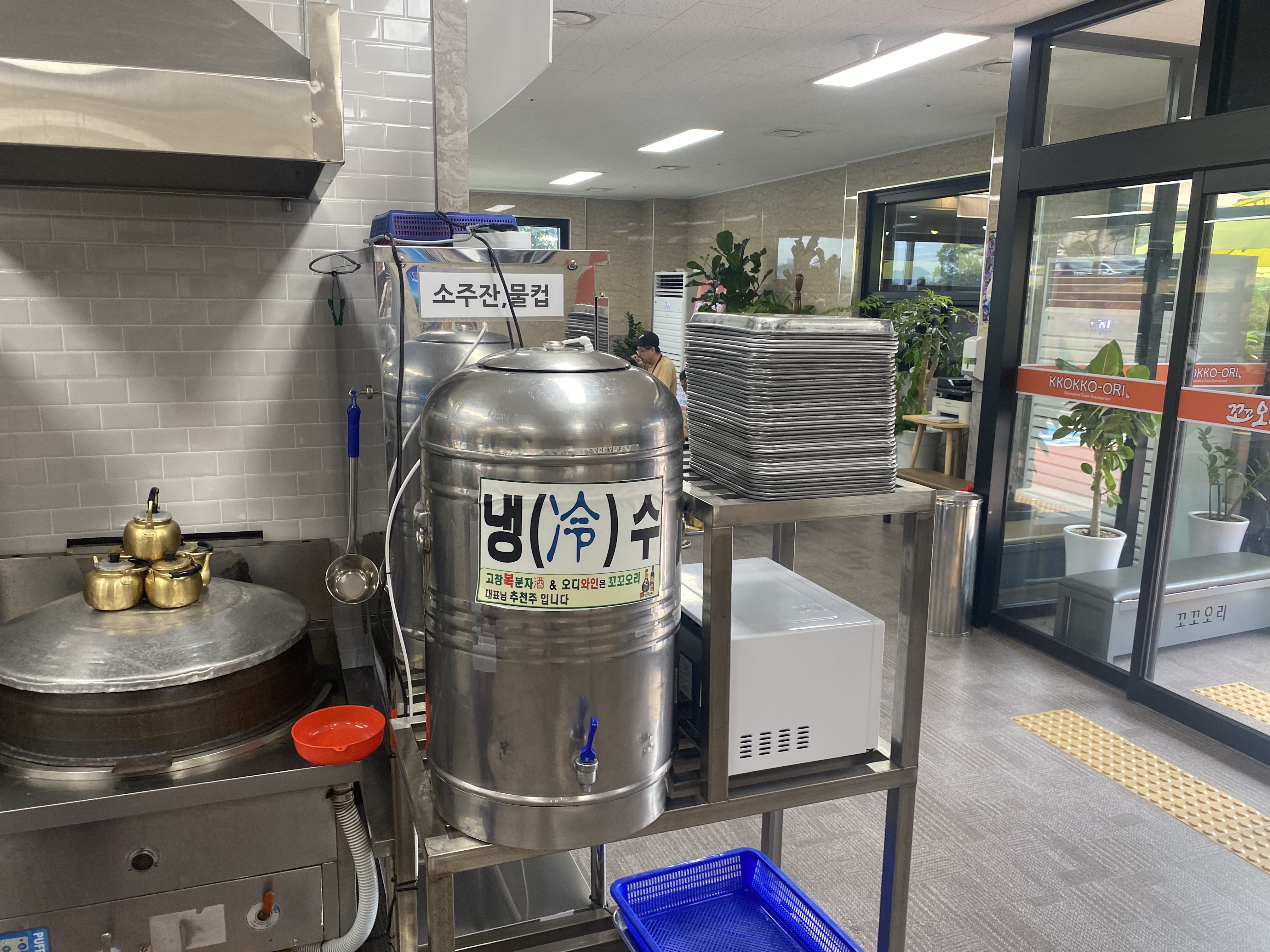 냉수와 온수를 따로 제공하고 있어서 주전자에 퍼가면 됩니다. 주전자도 감성적인 느낌이여서 술이 더 잘 들어갑니다.