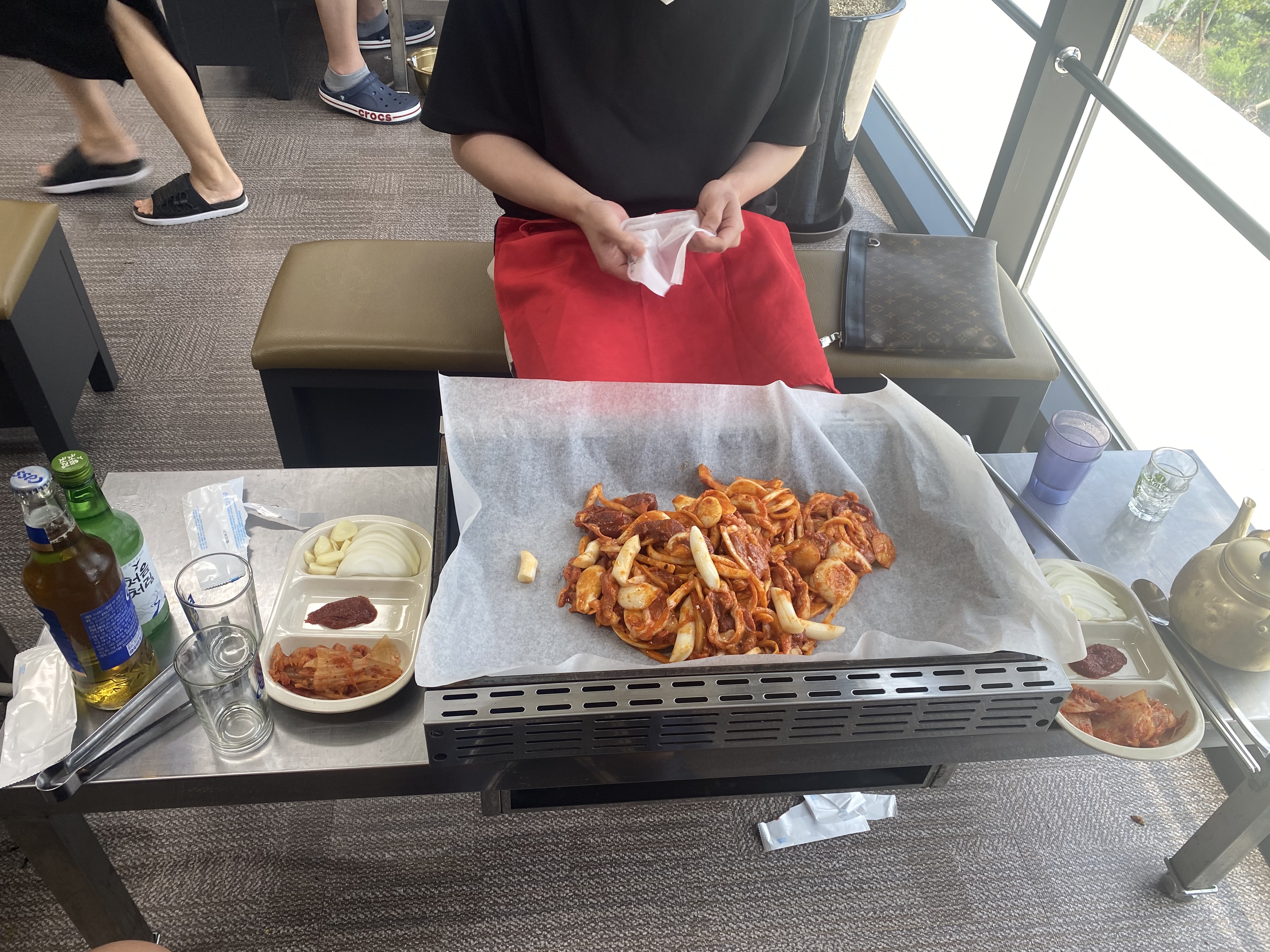 먼저 테이블이 가운데 불판과 받침대가 없는 의자로 셋팅이 되어 있어서 허리를 필 수 없는 곳이긴 하지만 상대방과 더 집중해서 이야기할 수 있는 분위기입니다. 또한 이전에는 저녁 8시면 마감을 했기 때문에 술 같은 경우는 편의점에서 미리 사 가지고 입장을 했습니다 ㅎㅎ 하지만 지금은 그런 낭만은 없지만 깔끔하게 잘되어 있어서 좋았습니다!