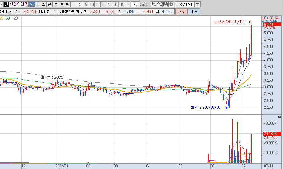 신화인터텍 차트
