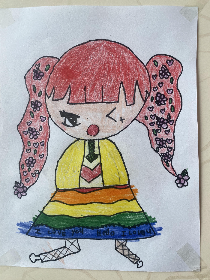 밑바탕을 그리고 색연필로 색칠을 해줍니다. 자세히 보시면 입이 없는걸 보실 수 있는데 이유는 입모양을 움직이기 위해서 그리지 않았습니다. 입모양과 사과는 따로 그렸습니다.
