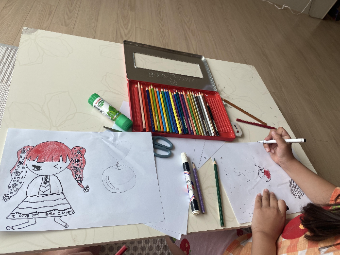 딸과 함께하는 놀이여서 제가 색칠도 하고, 카메라로 사진도 찍고, 같이 편집도 해서 완성본을 만들었습니다!