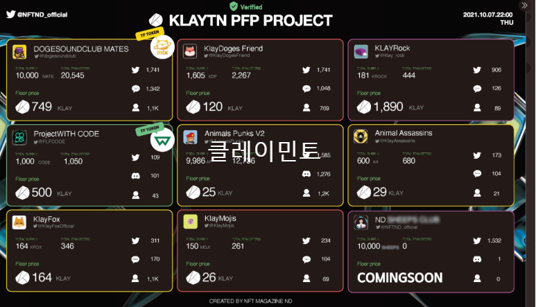 클레이민트 트위터에 올라온 NFT프로젝트 리스트이네요.