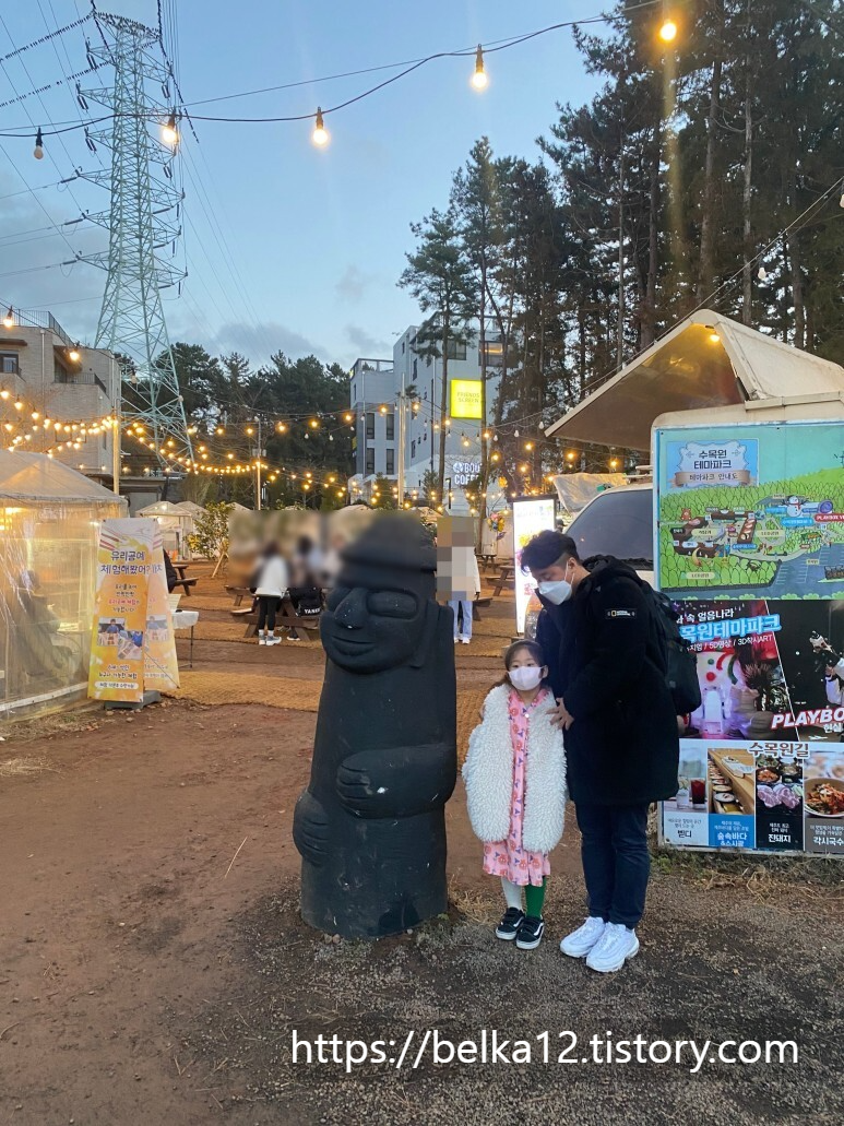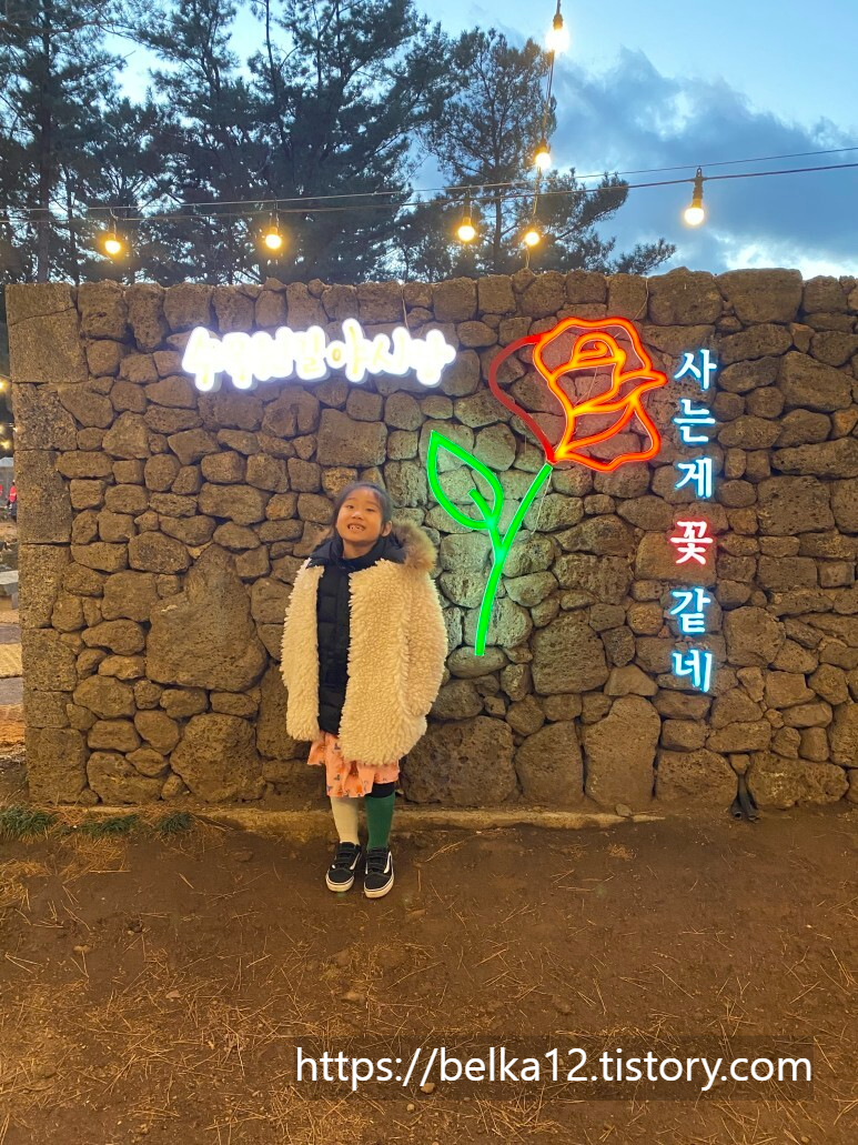 어느덧 큰 딸과 함께 사진을 같이 찍고 싶어서 제주도 수목원길 야시장 입구에서 기념샷을 찍었습니다.