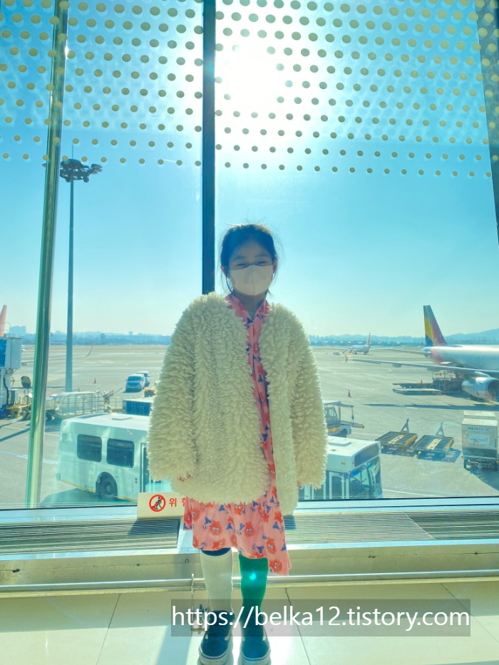 제주도 탑승룩(기브스룩 아닙니다)을 챙겨 입고 공항에서 기분 좋게 사진을 찍는 딸을 보면서 설레는 기분이 들었습니다.비행기를 타고, 호텔에 가는 게 좋다는 딸은 가기 전부터 노래를 불러서 그런지 탑승할 때부터 좋아 보이는 게 느껴졌습니다.