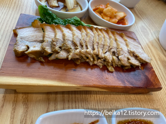 돔베고기소 + 고기 국수+ 비빔국수 3개를 시켰는데 양도 푸짐하고 고기가 정말 쫄깃하더라고요 맛 평을 하자면 고기의 육즙이 입안에서 터져 나오고 보들보들한 육질이 입안에서 샤르르 녹는 맛이 음식의 정성을 다한 게 느껴졌습니다.