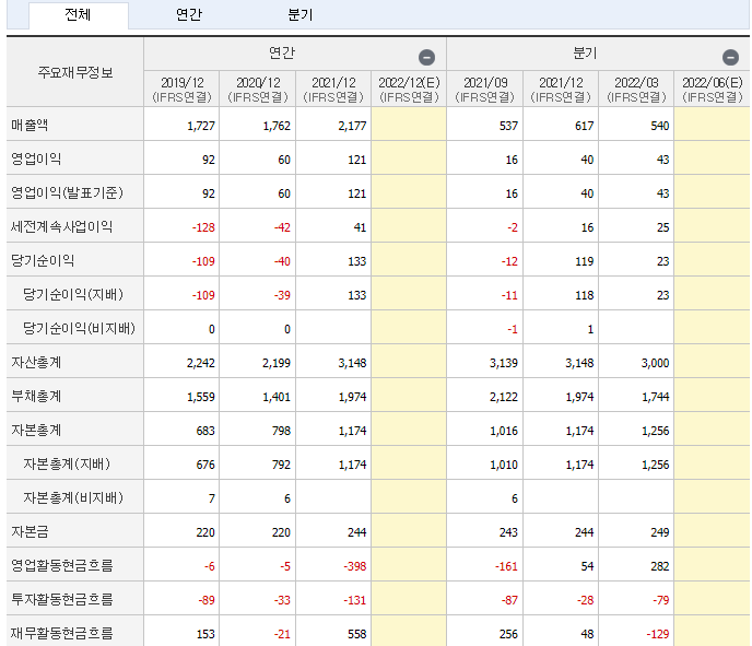 금양은 2019년, 2020년 당기순이익을 적자로 달성하였다가 2021년 흑자로 전환하였습니다. 매출액은 23.6% 증가 / 영업이익은 102% 증가를 하였으며, 원인으로는 미주 및 유럽지역의 발포제 수요 증가 및 국제 물류비용, 원자재 가격 인상에 대한 공급가 반영, 국내 트레이딩 시장 확대 등에 의해 전년대비 매출액 및 영업이익이 증가하였습니다.