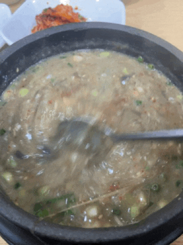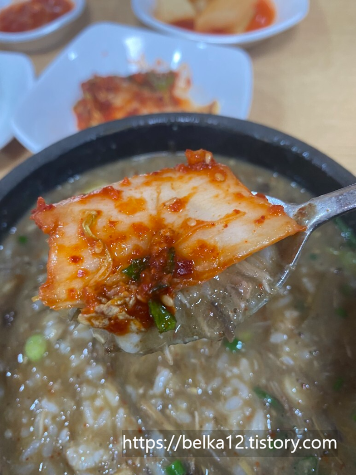 약간 죽 느낌의 고사리육개장은 고춧가루와 후추를 곁들여서 먹으면 맛이 정말 일품입니다. 특히 김치도 맛있어서 같이 먹으면 맛이 끝내줍니다.
