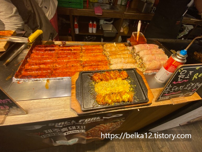 배가 출출하기도 하고 시장 음식을 먹어보고 싶어서 제주도 흑돼지 오겹말이를 먹어봤습니다!