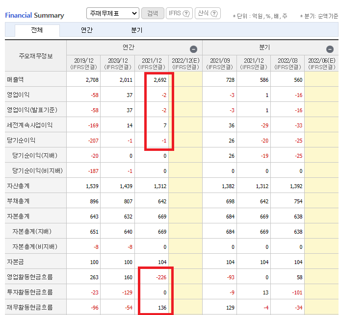 웰크론한텍의 재무제표를 보면 매출액은 2020년보다 상승을 하였지만 영업이익이 적자로 전환하였습니다. 이는 수주 확대에 따른 매출 증가와 21년 주요 원자재 가격 상승에 따른 매출원가 상승으로 영업손실 발생으로 주요 원인으로 나타나고 있습니다.