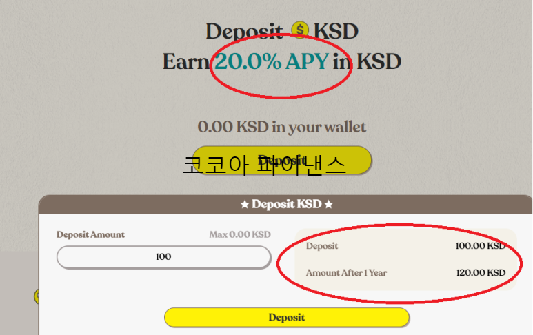 대출로 받은 KSD로 1년의 20% 수익을 제공하고 있네요.