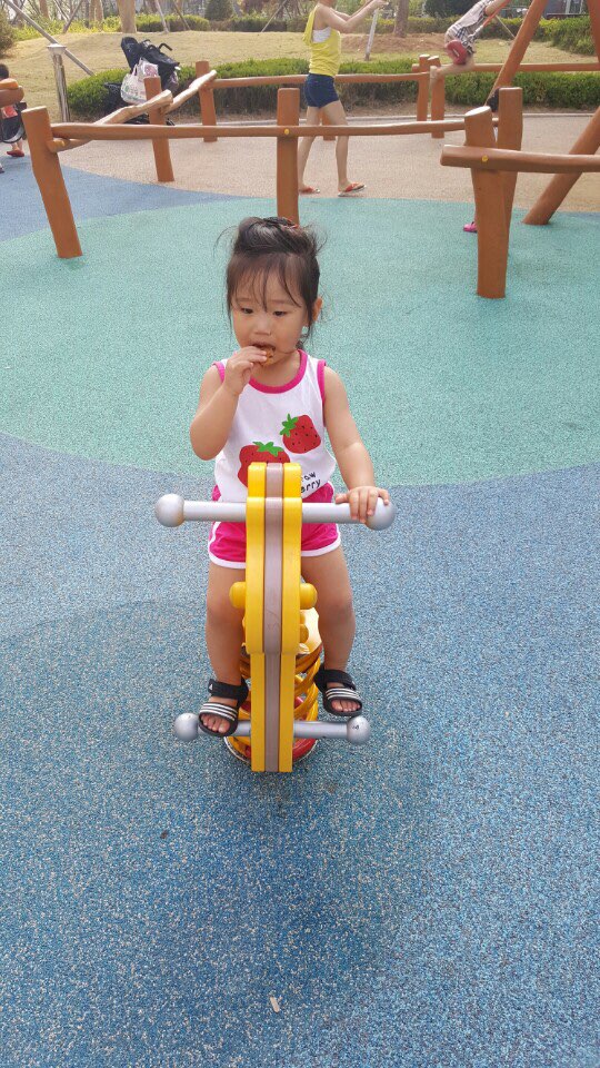 모방에는 대상이 필요하다. 가장 좋은 방법은 놀이터에 나가는 것이다. 개인적으로 모듈화된 놀이터에 구조는 별로 탐탁지 않지만, 그안에서 또래들과 어울리는 장소가 적합한 곳이 놀이터인 만큼 놀이터에 데려가서 놀아주는 것도 좋은 놀이법이다. 한가지 주의할점은 아이에게서 눈을 떼서는 안된다는 것이다.
