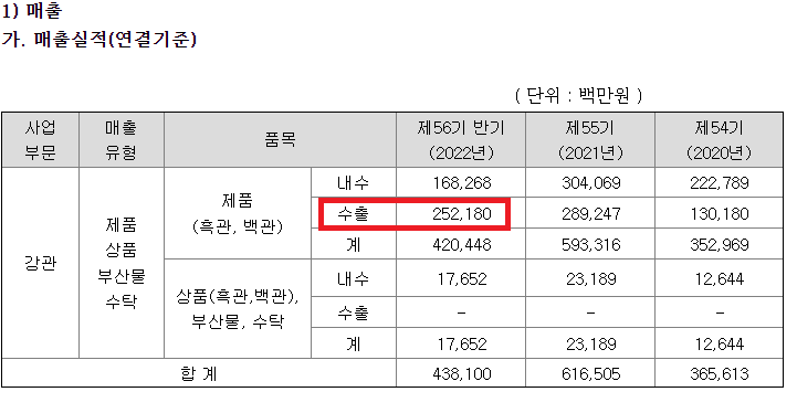 휴스틸의 매출실적을 보게되면 수출이 눈에 띄게 증가한 것으로 보이고 있습니다.
