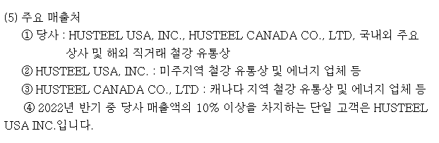 휴스틸의 주요 해외매출처를 보시면 미주지역과 캐나다 지역 철강 유통상을 판매하고 있습니다. 미주지역은 고유가 영향으로 상반기까지는 철강시황 상승세가 지속되고 있습니다. 하지만 하반기의 경우 원재료 단가 하락 등으로 인하여 상승세가 꺾일 것으로 예상하고 있습니다.