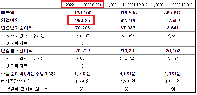 휴스틸 반기보고서 요약 재무제표를 보시게 되면 영업이익이 눈에 띄게 증가한 사실을 알 수 있습니다. 작년 2021년에 영업이익이 632억 원 / 올해 절반도 안된 반기 보고서에는 985억원에 실적을 달성했습니다. 만약 이런 추세이면 2022년 영업이익이 1,800억원으로 예상한다면 현재 휴스틸의 시가총액이 2,300억 원이기에 엄청난 저평가라고 볼 수 있습니다.