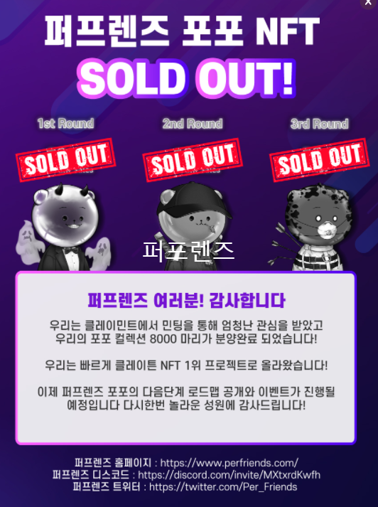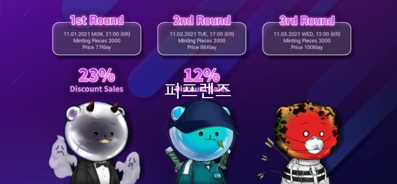 퍼 프렌즈의 NFT민팅은 총 3라운드에 걸쳐서 진행이 되었네요!!