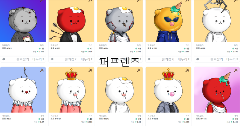 다양한 종류의 포포들이 있으며 퍼 프렌즈 NFT는 등급별로