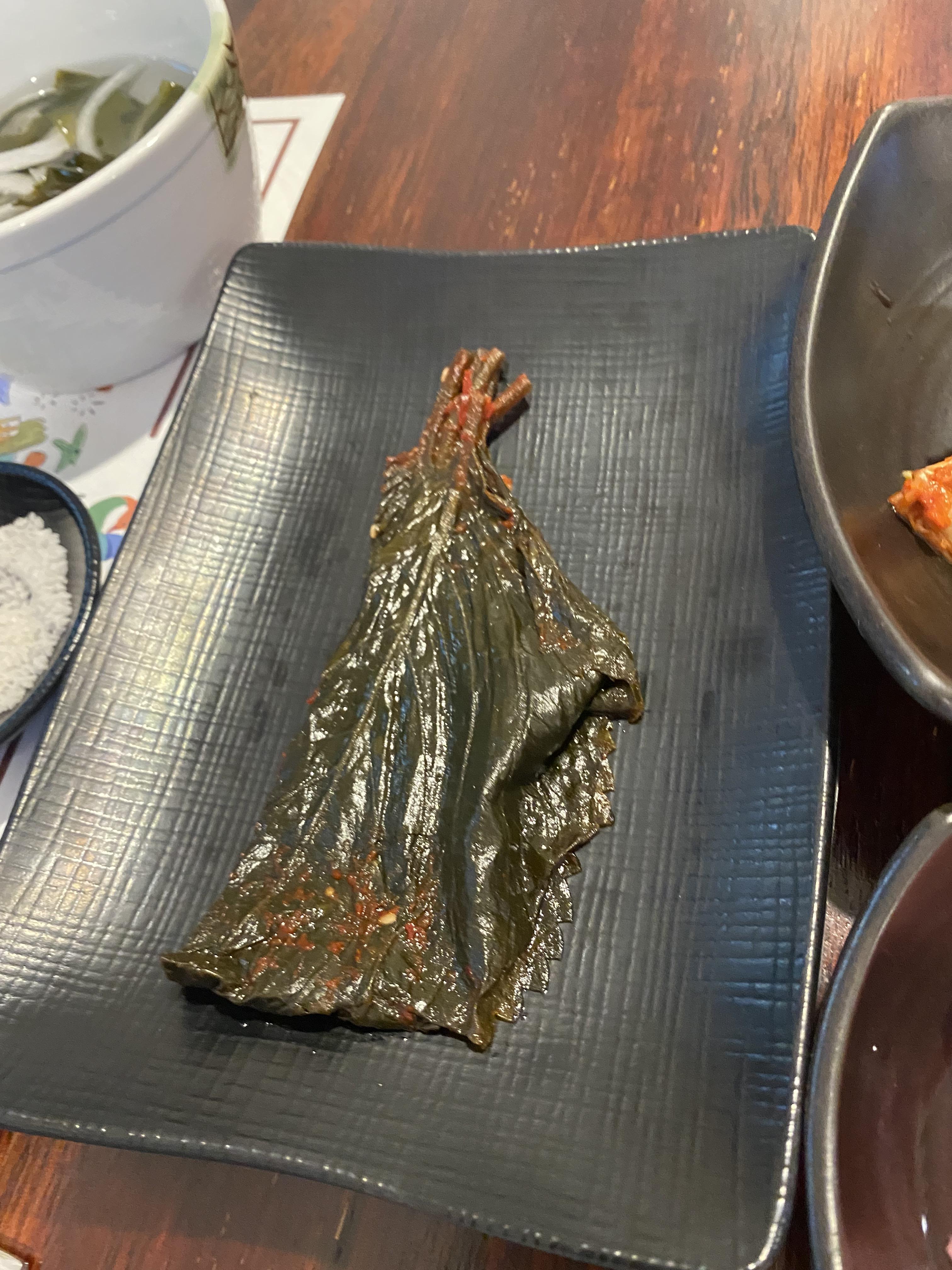 김치는 아삭하고 약간 신맛이 곁들여져서 딱 알맞게 숙성된 김치입니다. 깻잎도 밥과 함께 먹으면 정말 맛있습니다.