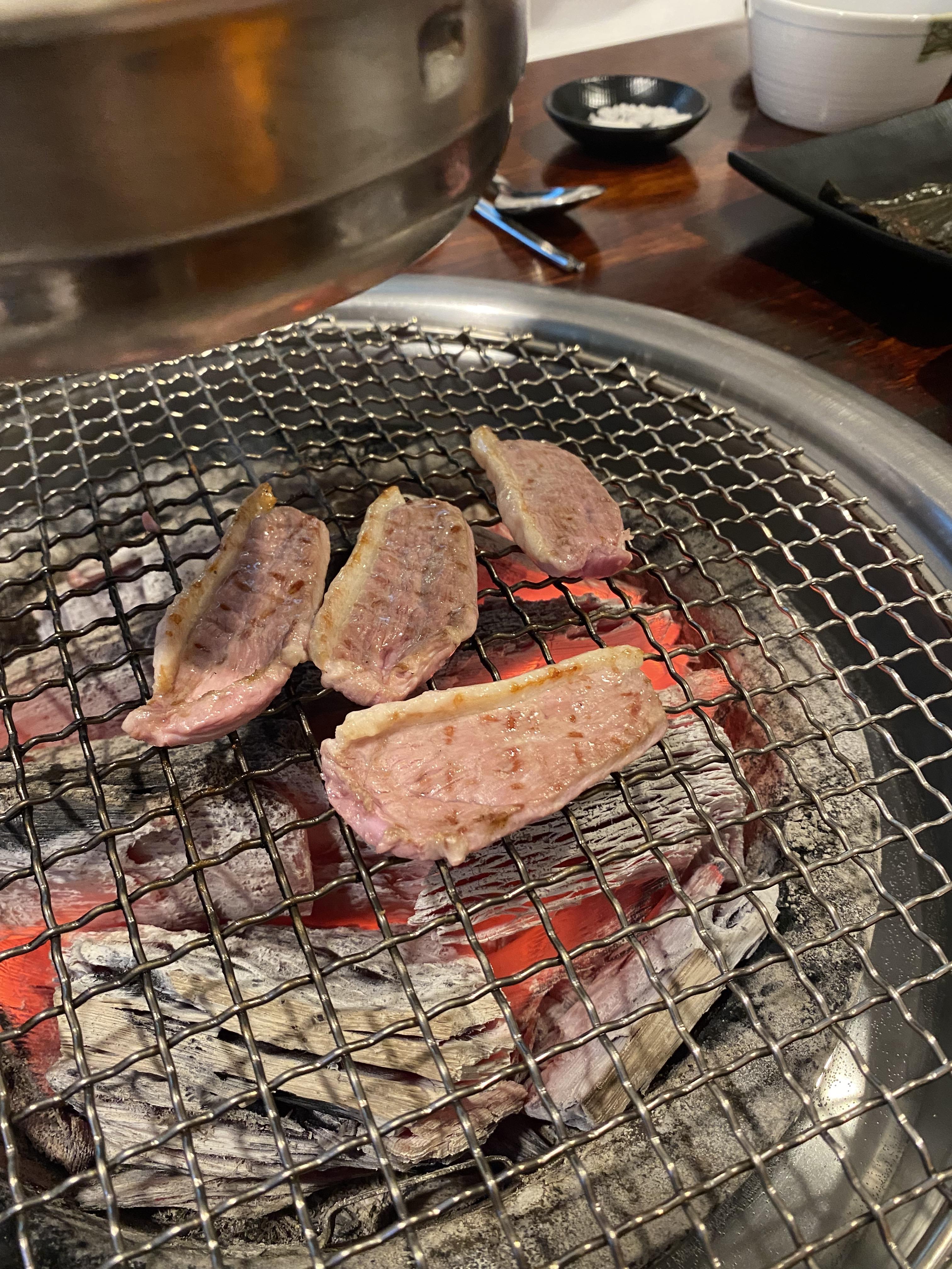 오리고기가 이렇게 나오는데 빛깔이 정말 예술이었습니다. 저는 오리고기를 이렇게 구워서 먹었던 적이 없어서 그런지 신기하더라고요. 오리고기의 부위별로 굽는 방법과 먹는 방법이 있어서 처음 오신 분은 서빙하시는 분에게 꼭 물어봐야 합니다.