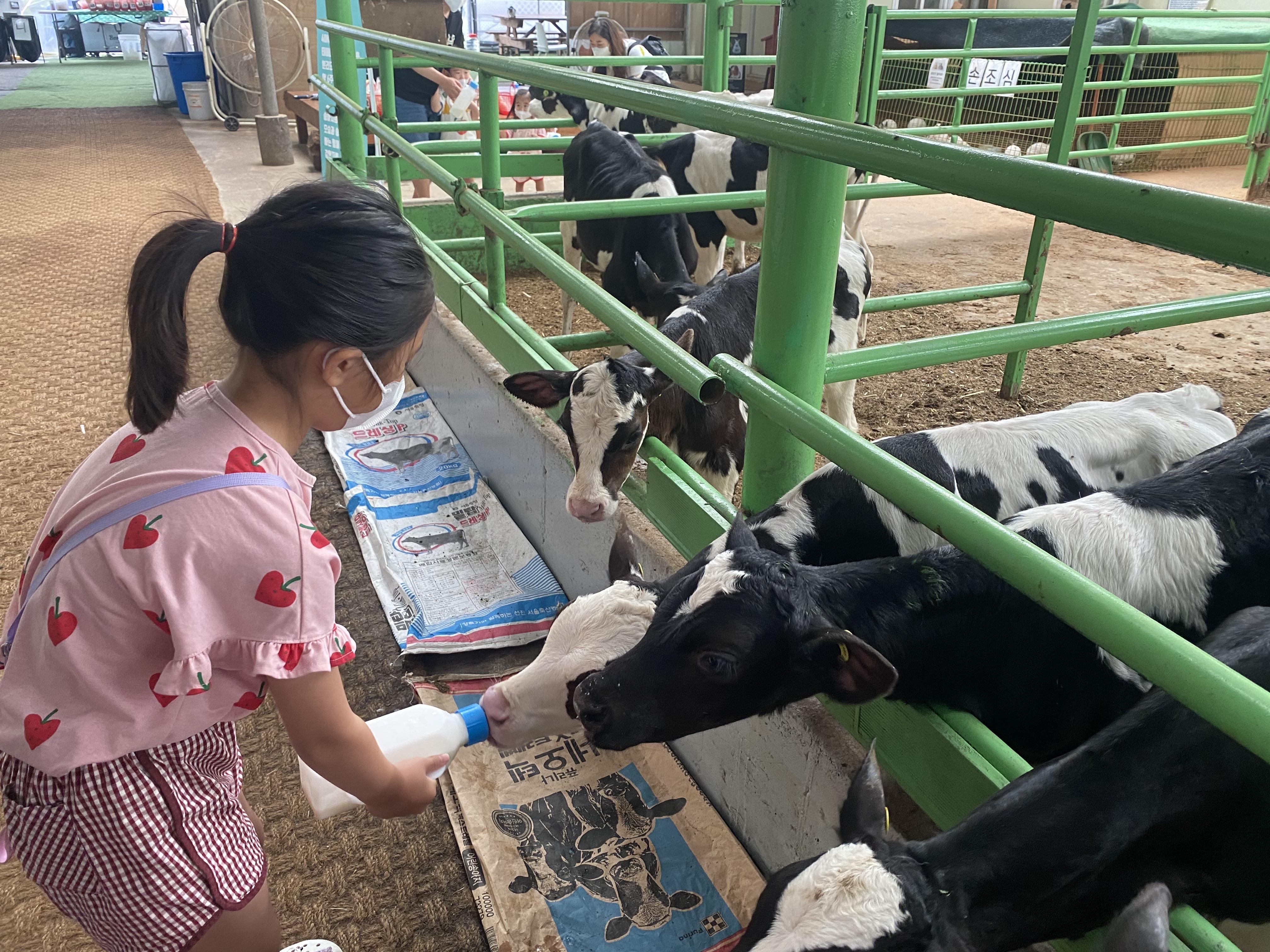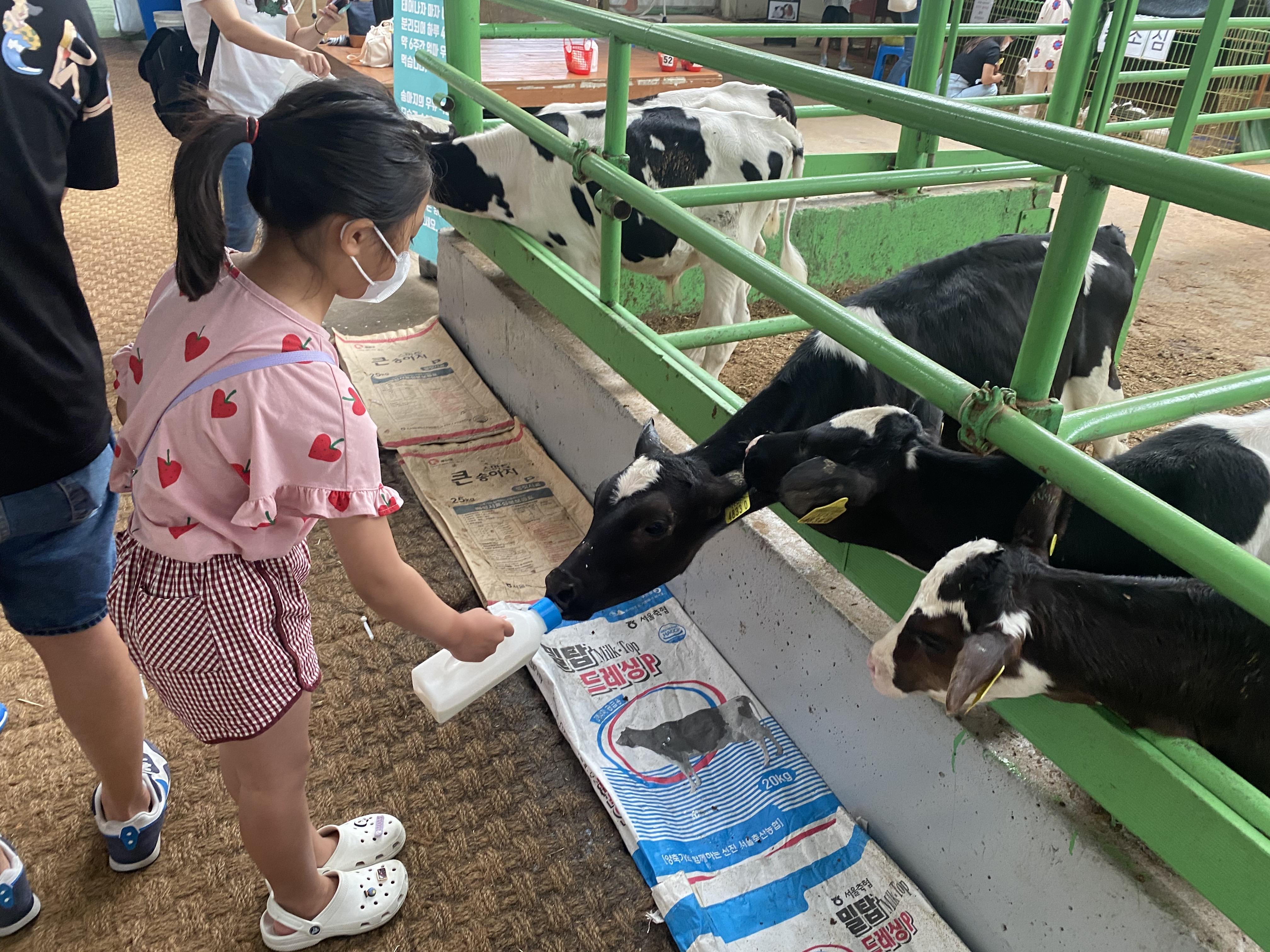 연보람 목장에서 송아지, 산양, 토끼, 기니피그, 고양이와 같은 동물들이 있어서 아이들이 먹이를 주면서 교감을 나눌 수 있게 했습니다. 특히 송아지에게 우유를 주는 체험은 쉽게 할 수 없기에 딸이 더욱 재밌어했던 거 같습니다.
