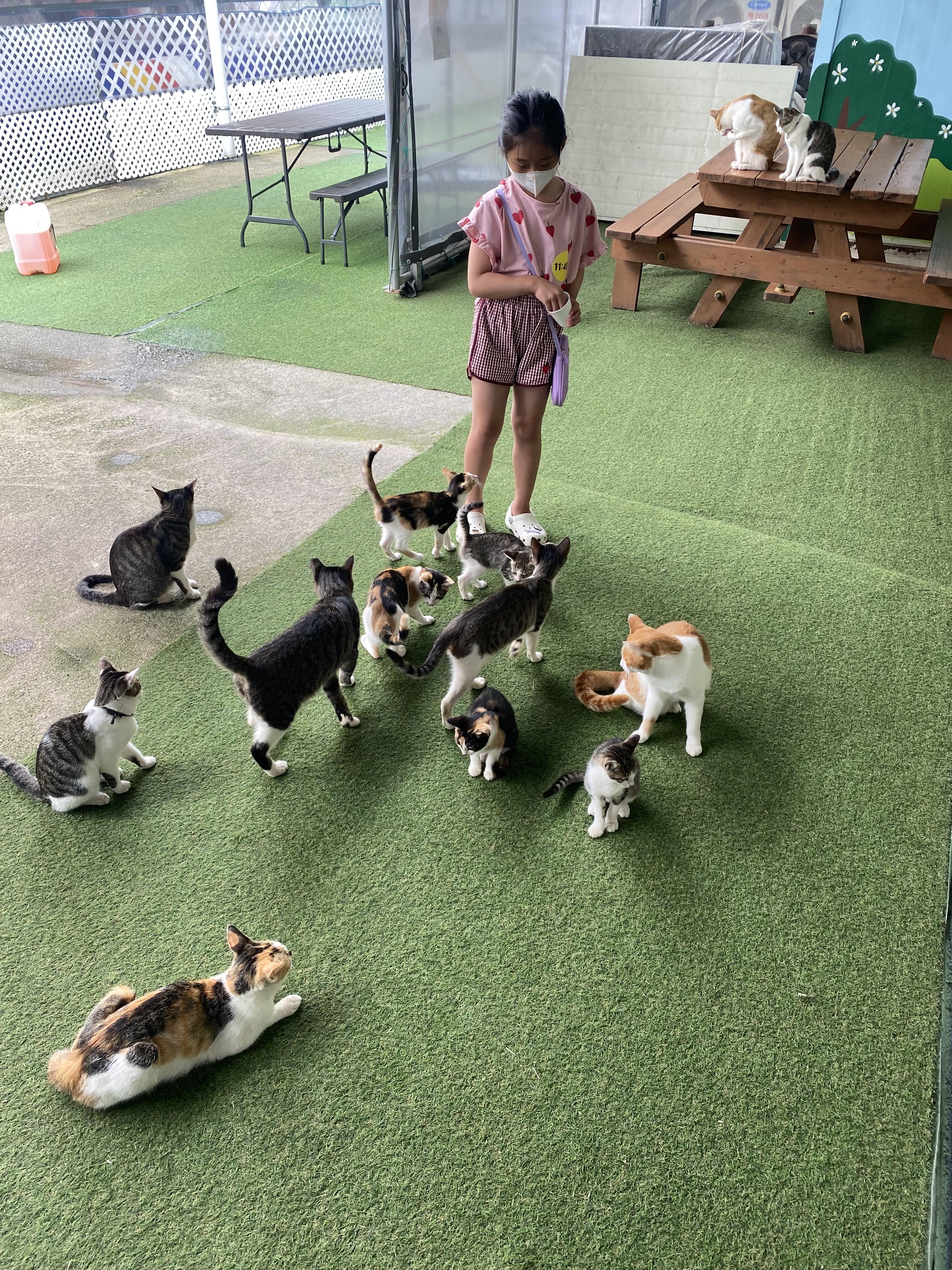체험장 입구에 고양이들이 정말 많이 모여 있어서 딸은 여기서 고양이와 함께 무려 한 시간 동안 놀았습니다. 고양이들이 신기한 게 사람을 피하지도 않고 잘 따라서 더 교감을 할 수 있었습니다.