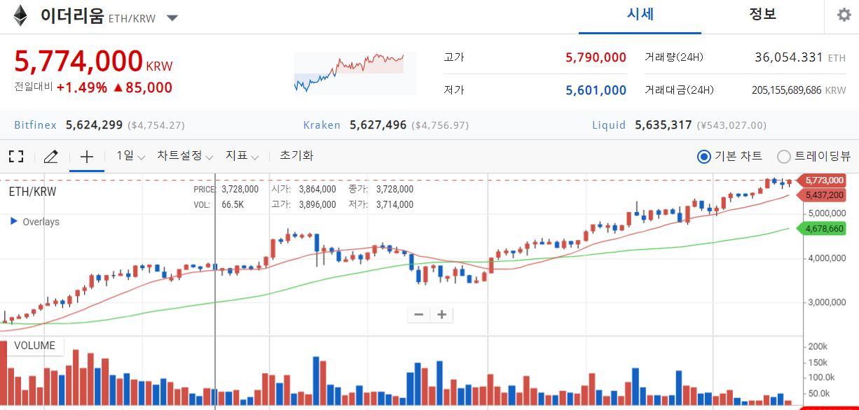 이더리움과 비트코인이 최고가를 경신하고 있으며,