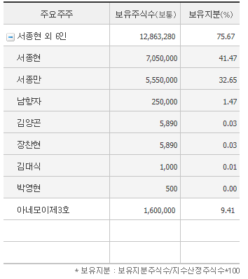 또한 대주주의 보유지분도 무려 75%에 달하면서 안정적인 지배구조로 경영을 하고 있습니다.