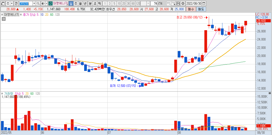 안녕하세요 벨카입니다. 시간외단일가에서 상한가로 마감한 대명에너지에 대해서 분석을 해보려고 합니다.