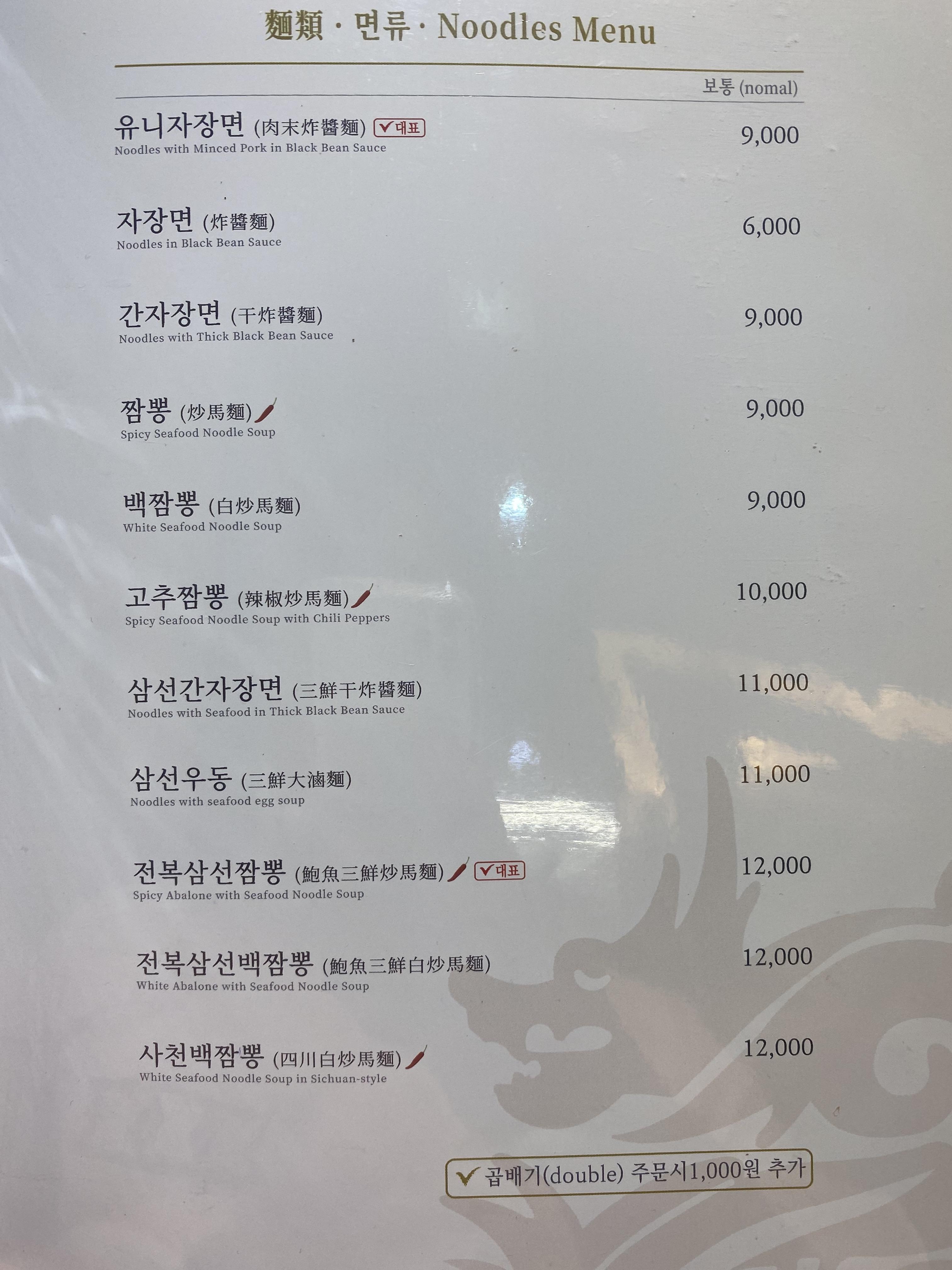 차이나타운 맛집 신승반점 메뉴