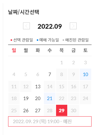 참고로 9월 예매는 마감이 되어서 10월을 기다려봐야 합니다.