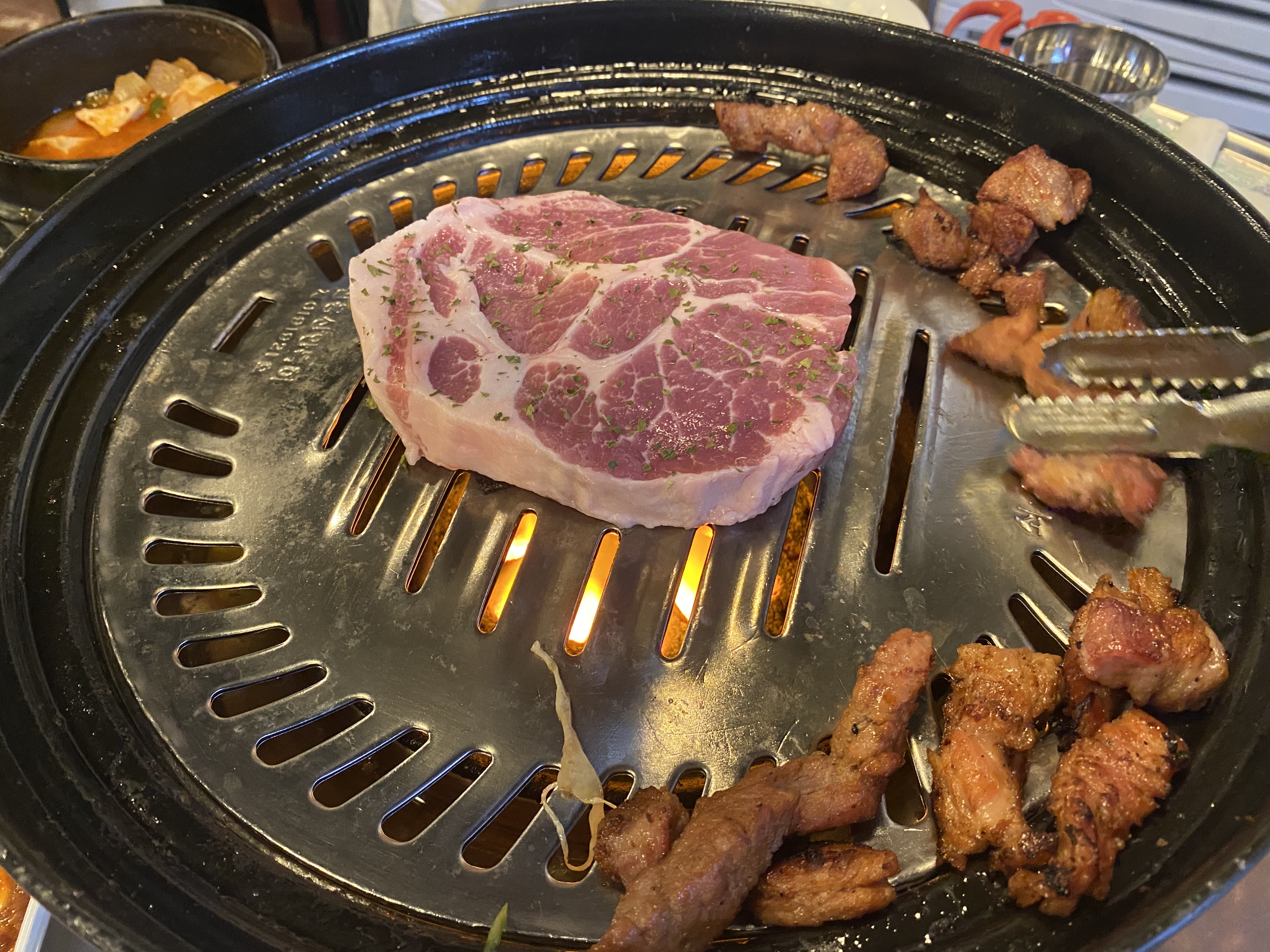 잰거를 맛있게 맛보고 바로 안잰거 2인분을 주문했습니다. 목살에 시즈닝만 해서 나오는데 고기의 상태가 최상인걸 볼 수 있습니다.