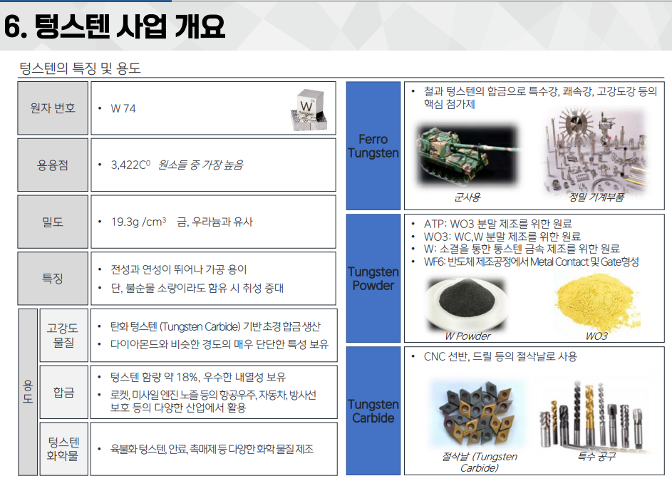 동국산업에서 투자를 하고 있는 텅스텐의 특징을 모시면 다양한 용도로 사용할 수 있는 것을 확인할 수 있습니다.