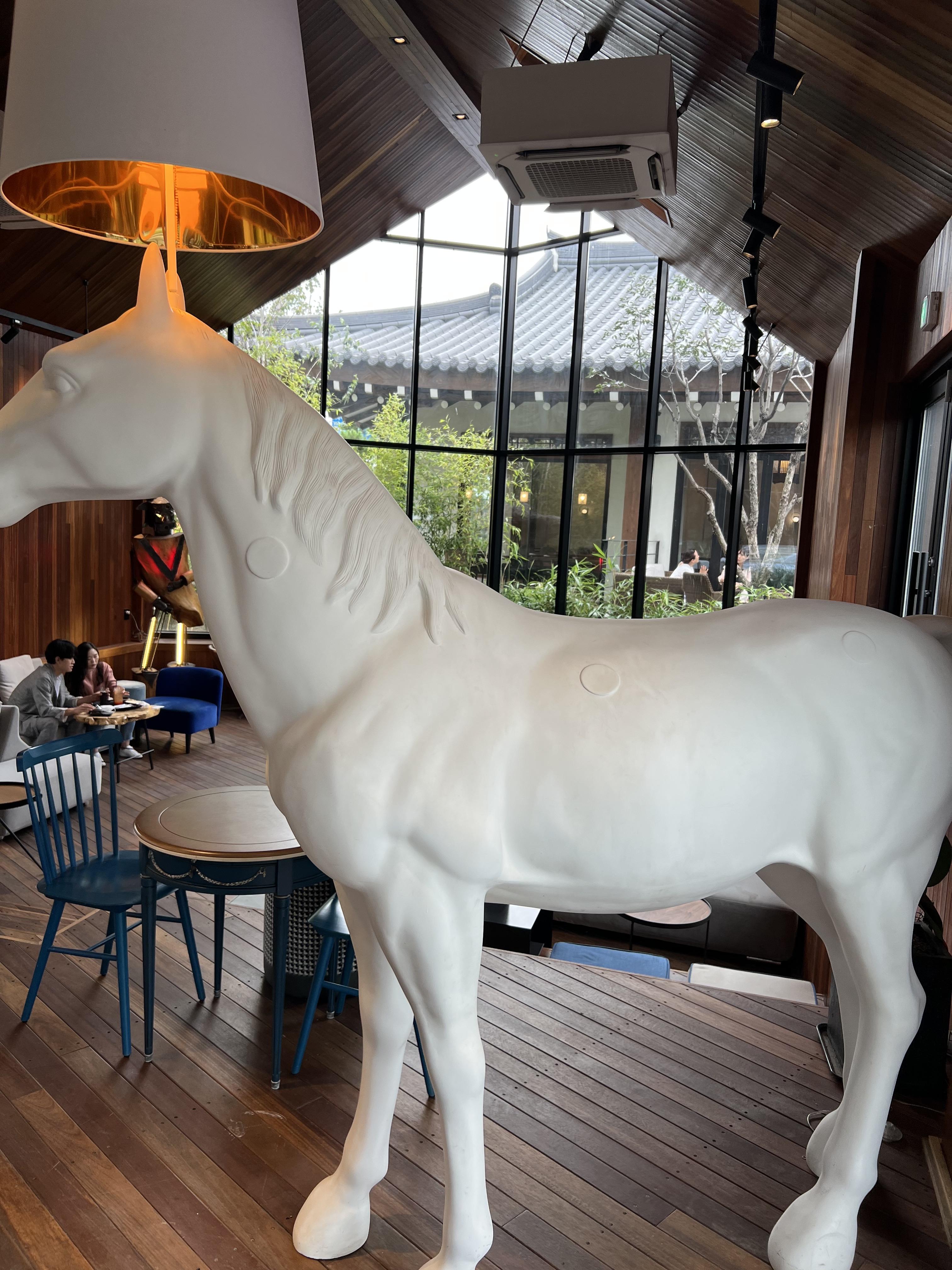 인천 송도 카페 바다쏭 내부에도 큰 대형 말 조형물이 비치되어 있어서 웅장함을 자랑하는 송도에 대형 카페입니다.
