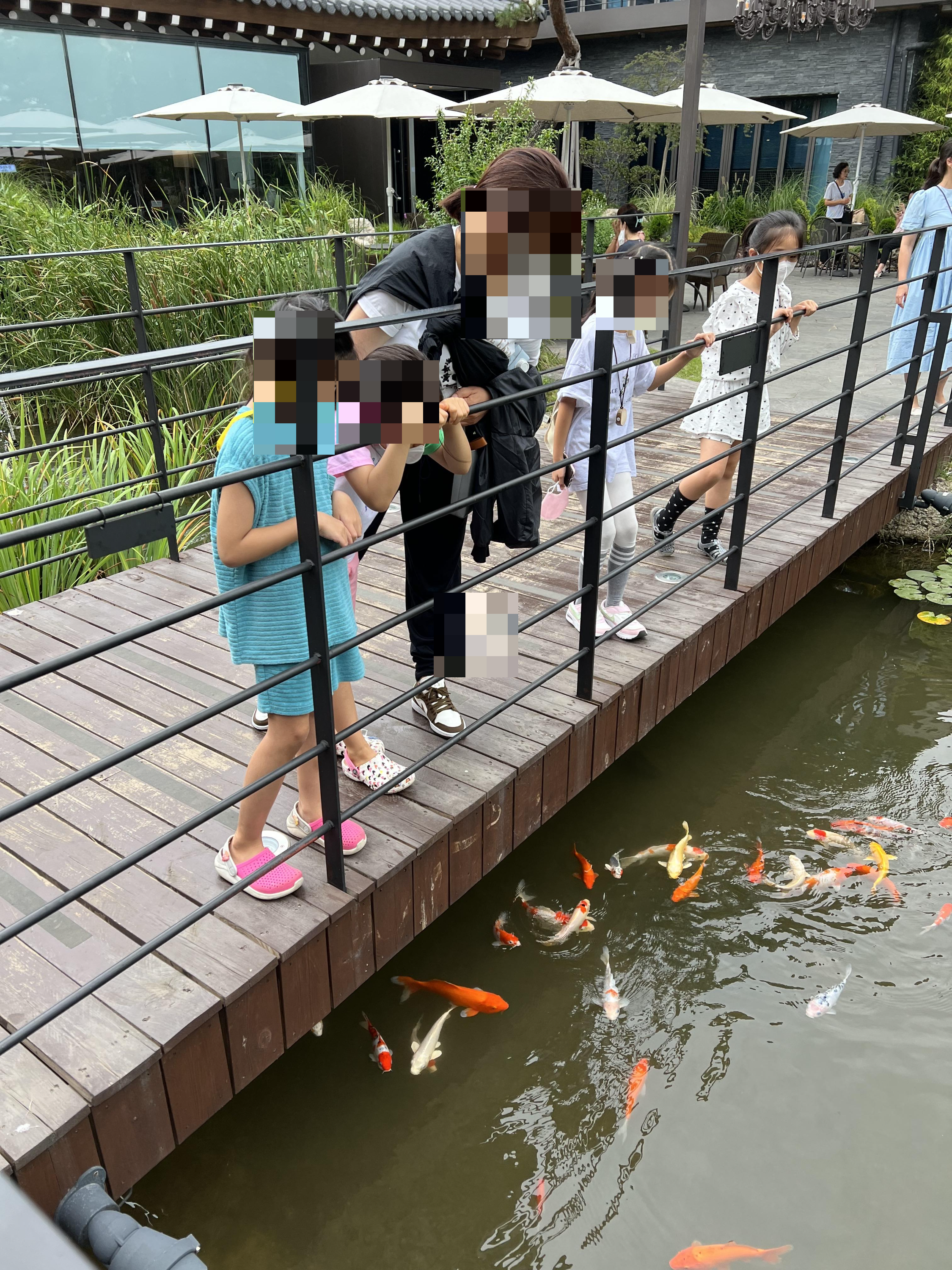 야외는 넓은 연못이 있어서 아이들이 물고기를 볼 수도 있습니다. 아이들이랑 같이 오면 이런 구경도 할 수 있어서 즐겁게 시간을 보낼 수 있습니다.