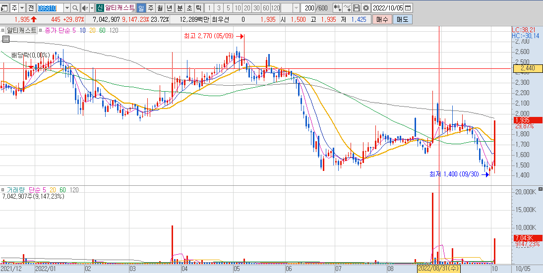 안녕하세요 벨카입니다. 금일 상한가로 마감한 알티캐스트에 대해서 분석을 해드리려고 합니다. 사실 알티캐스트는 지인을 통해서 알고 있는 종목으로서 개인적으로 상승하기를 기대하는 종목이기도 합니다. 그럼 알티캐스트가 상한가를 간 사유와 분석 포스팅을 하도록 하겠습니다.