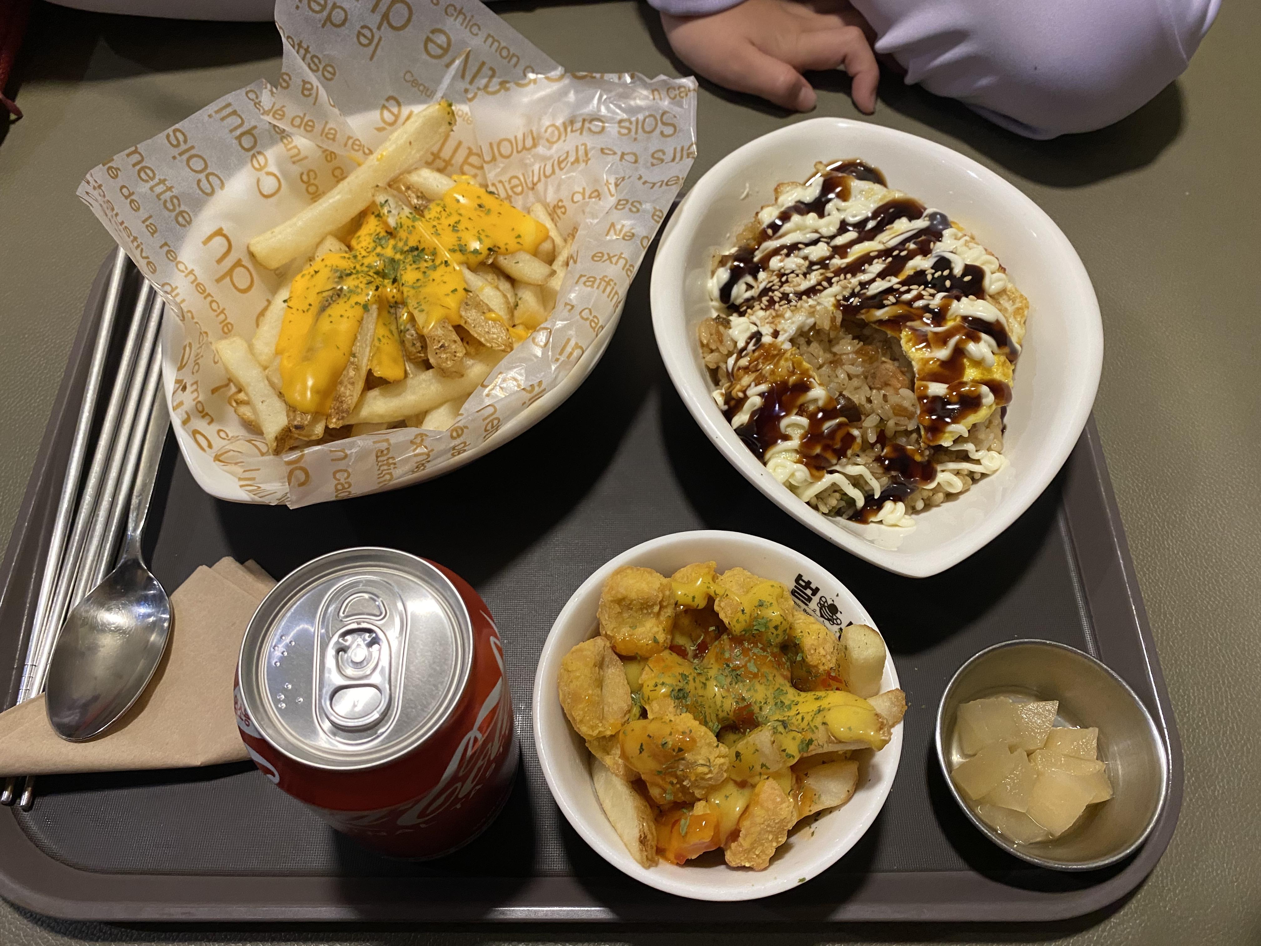 만화카페에서 먹는 먹거리 음식은 정말 꿀맛이더라고요. 데리야끼 볶음밥과 치즈포테이토를 시켜서 딸과 함께 먹었습니다.