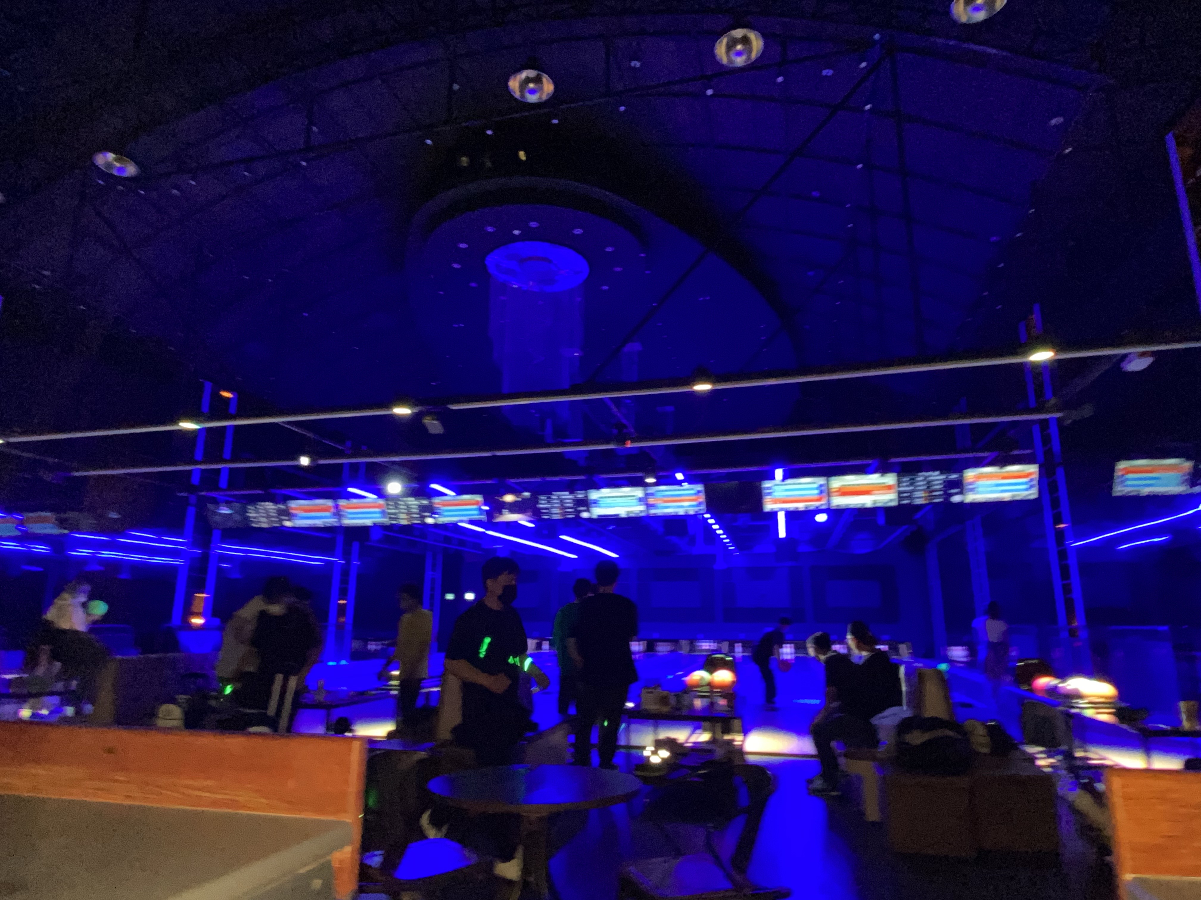 그리고 입장하는 볼링스테이션에서 볼링장의 모습입니다. 자유로운 분위기와 클럽의 음악이 더해져서 젊어지는 느낌이 들었습니다. 젊은 기운을 받고 가네요.