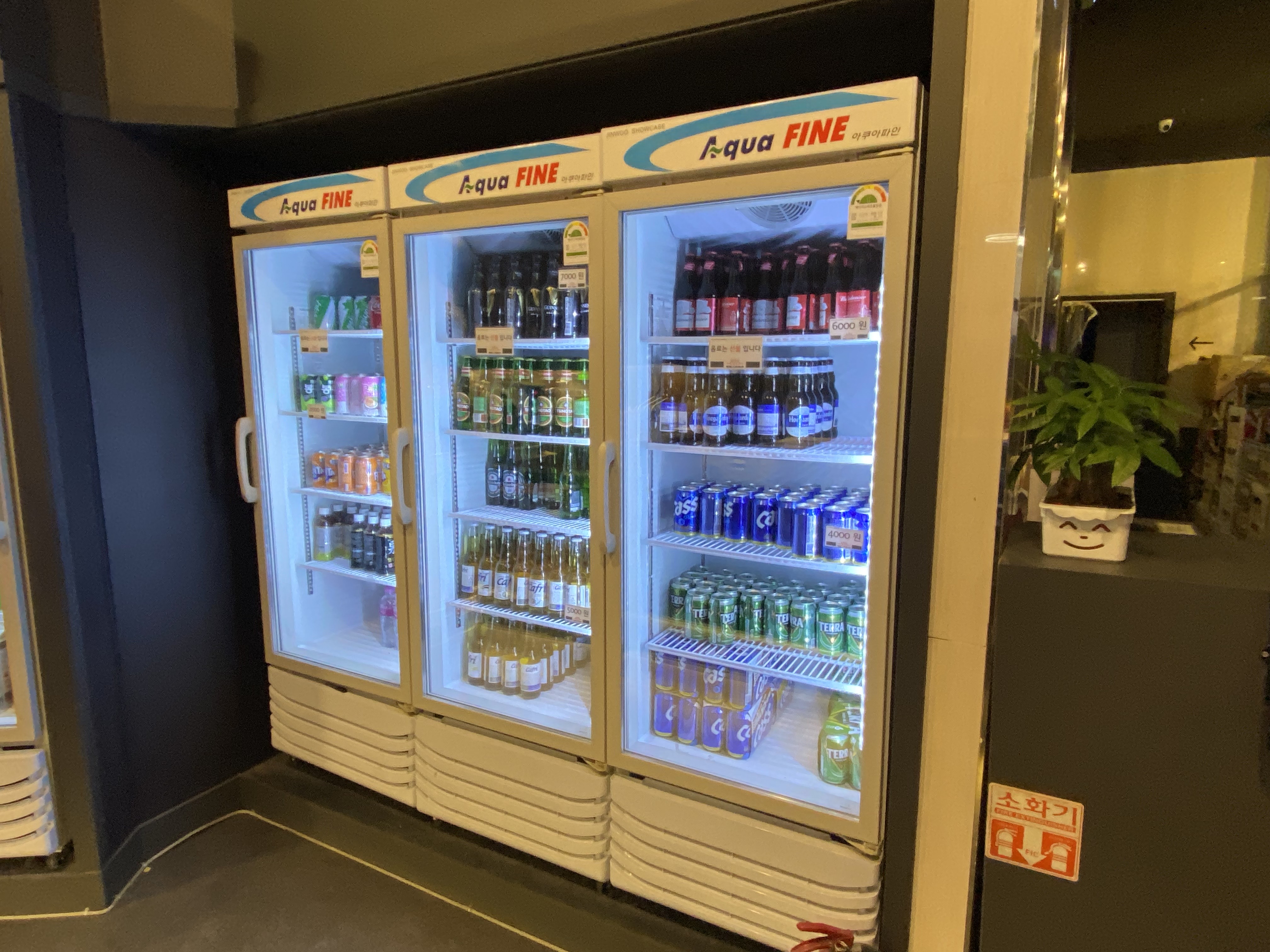 음료와 시원한 맥주들이 냉장고에 비치되어 있어서 꺼내 먹으면 됩니다.