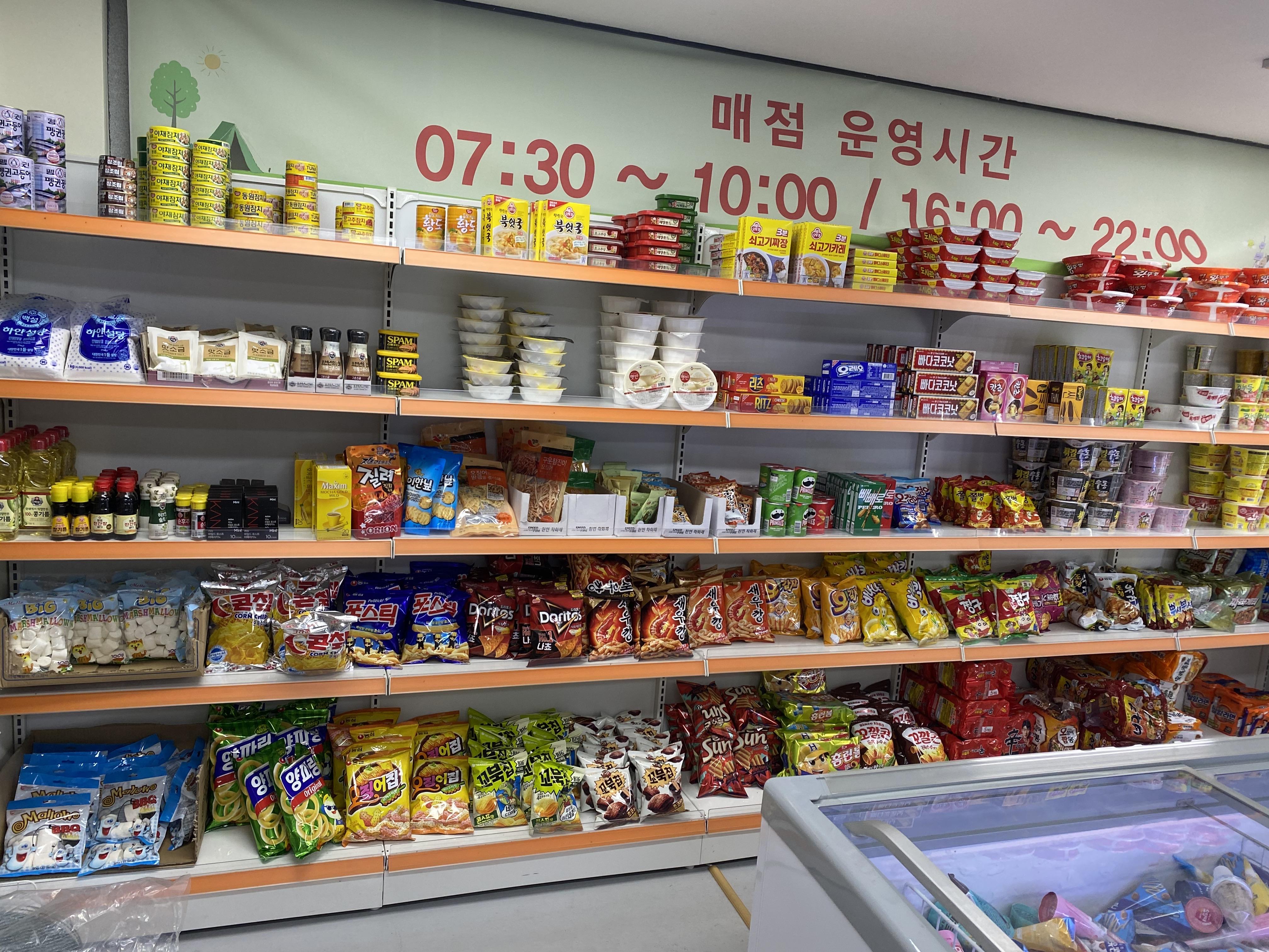매점 운영시간은 07:30~10:00 / 16:00~22:00까지 운영하고 있으며, 캠핑장에서 필요로 하는 물품들을 판매하고 있습니다.